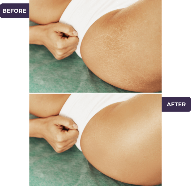 Stretch marks are often the result of pregnancy, or they may be due to weight fluctuations, or hormonal changes that occur during puberty. Whatever the cause, stretch marks always turn up in the wrong places, such as on the abdomen, hips, legs, and upper arms. When you have stretch marks on these areas it makes it almost impossible to confidently sport that bathing suit or shorts, without feeling some amount of anxiety. But we can help!